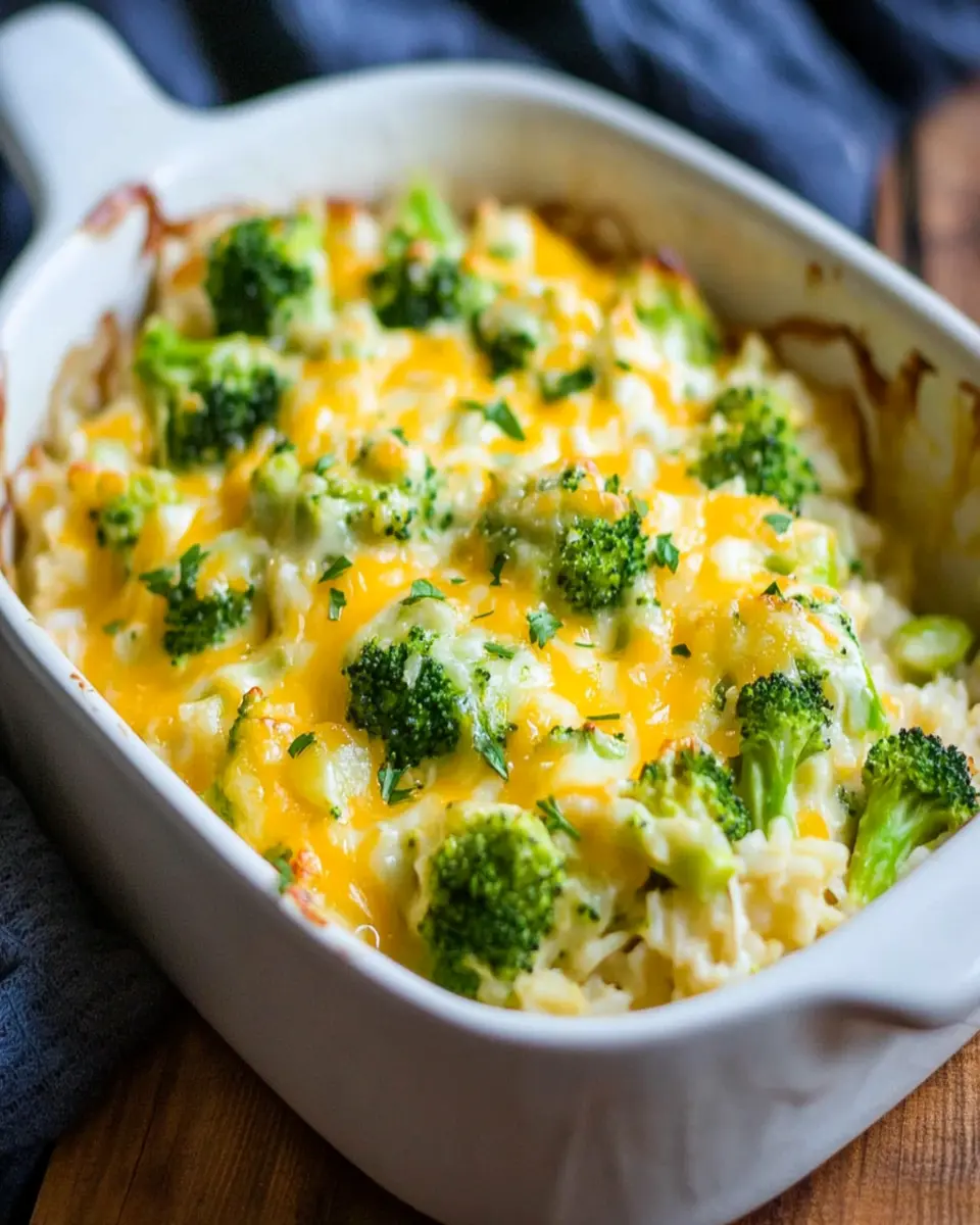 A creamy and comforting broccoli rice casserole, perfect for a side dish or a main meal.