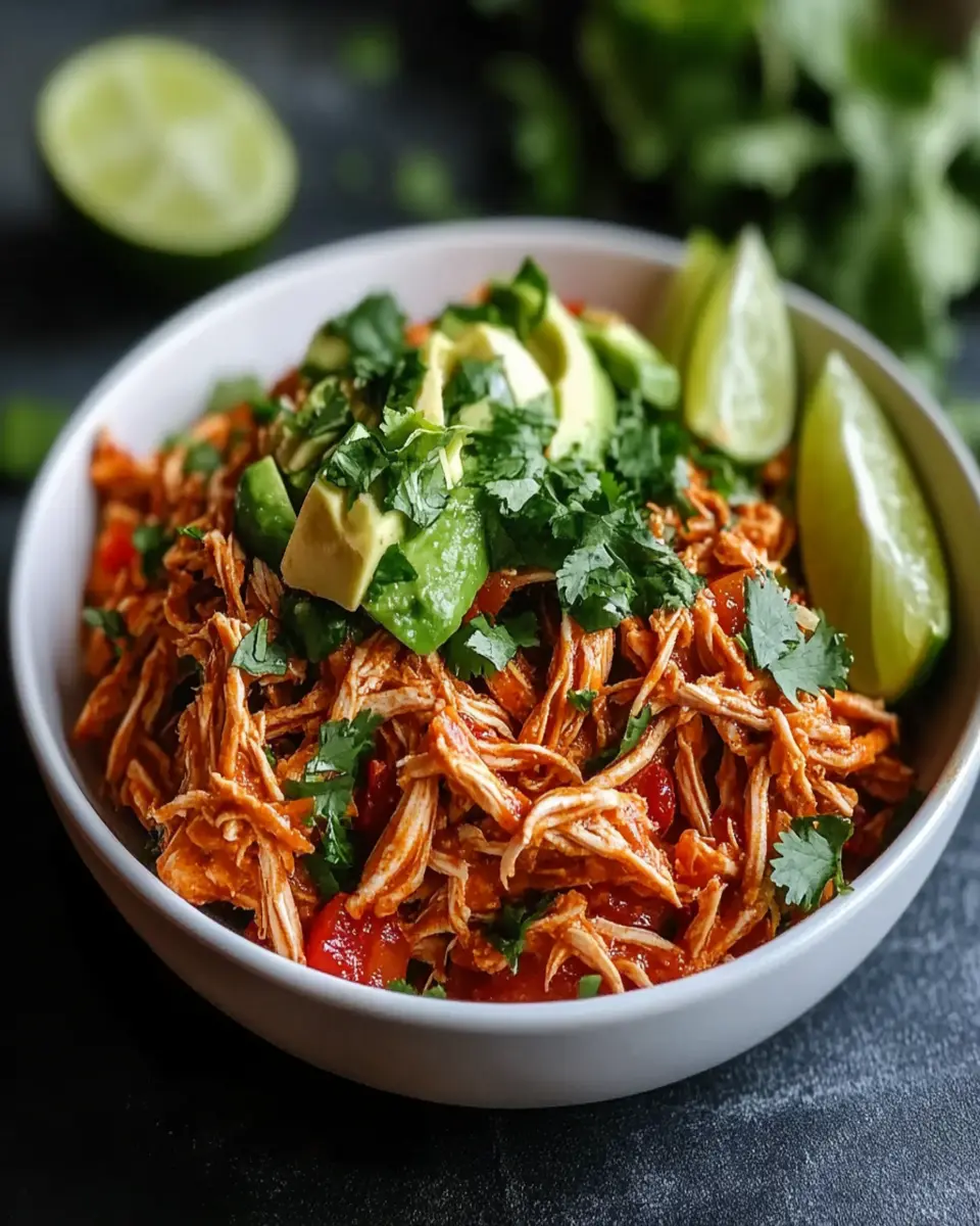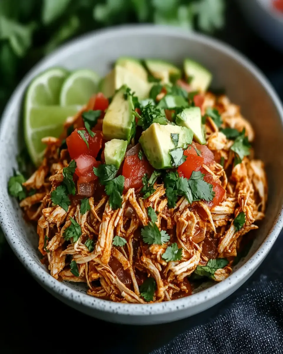 Delicious and spicy Mexican Pulled Chicken, perfect for tacos, burritos, or served over rice.
