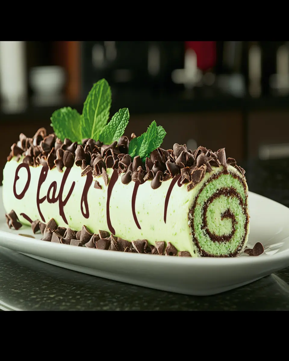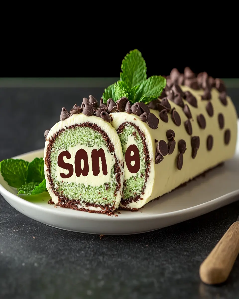For an elegant touch, garnish the cake roll with fresh mint leaves and a dusting of powdered sugar just before serving. This not only adds visual appeal but also hints at the refreshing mint flavor inside. You can also drizzle chocolate sauce over the top for added decadence.