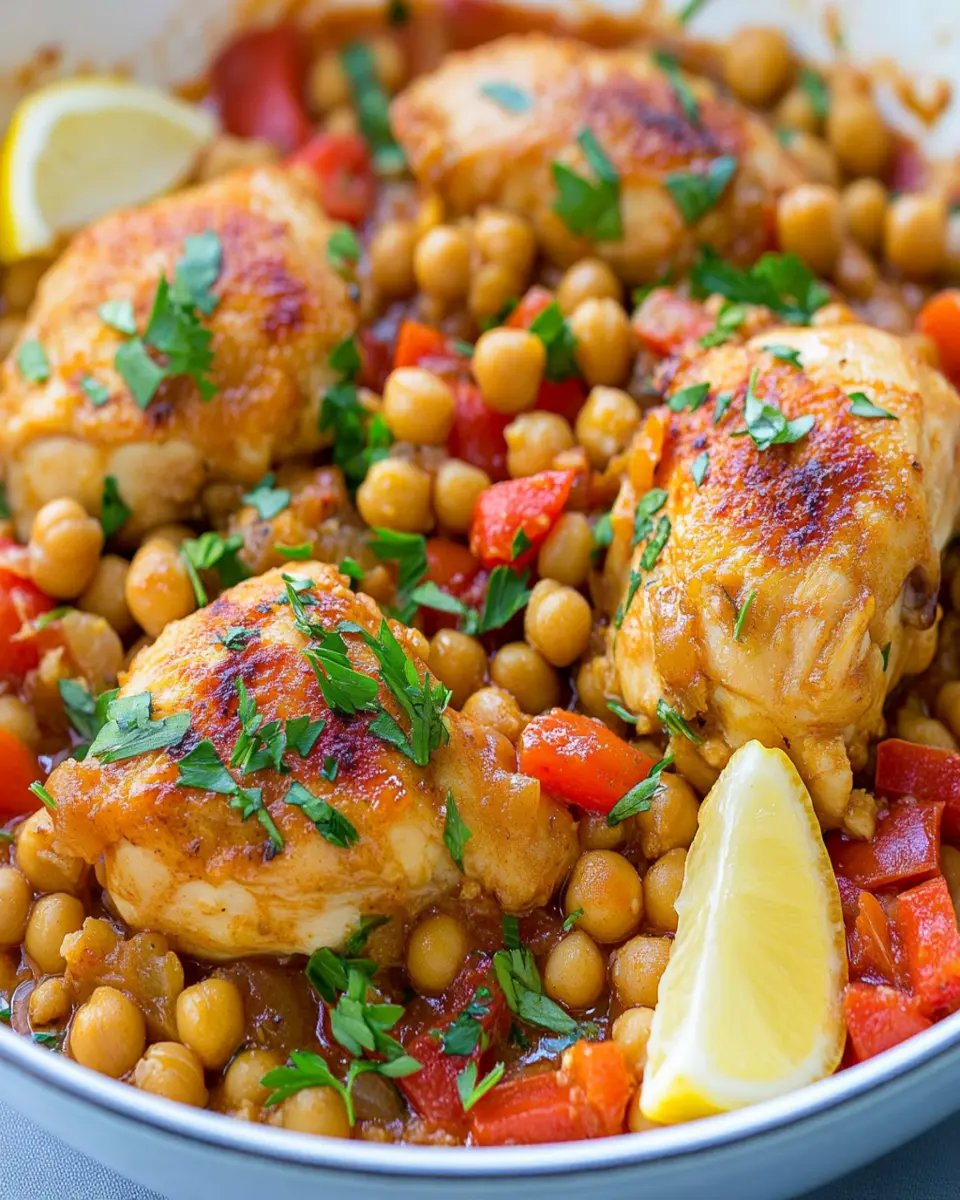 The combination of tender chicken thighs and protein-rich chickpeas creates a satisfying dish that appeals to both the taste buds and the stomach. The aromatic spices, like smoked paprika and cumin, infuse every bite with warmth and depth, making it perfect for those chilly evenings when you crave something hearty and comforting.