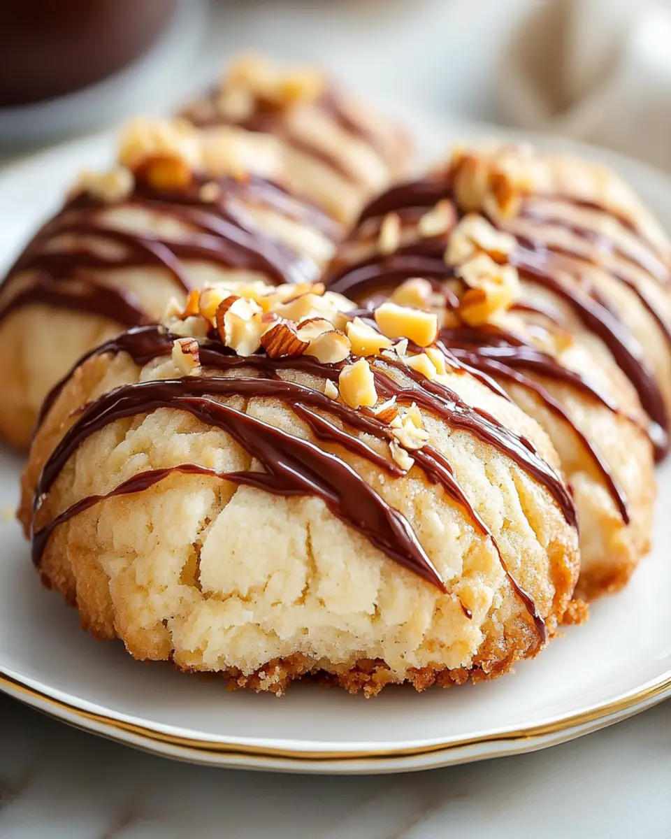 Consider serving these cookies alongside a warm cup of coffee or tea. The rich flavors of the Nutella glaze complement the bitterness of coffee beautifully, making for a perfect afternoon treat. For a lighter option, pair them with a glass of cold milk or a refreshing herbal tea for a delightful contrast.