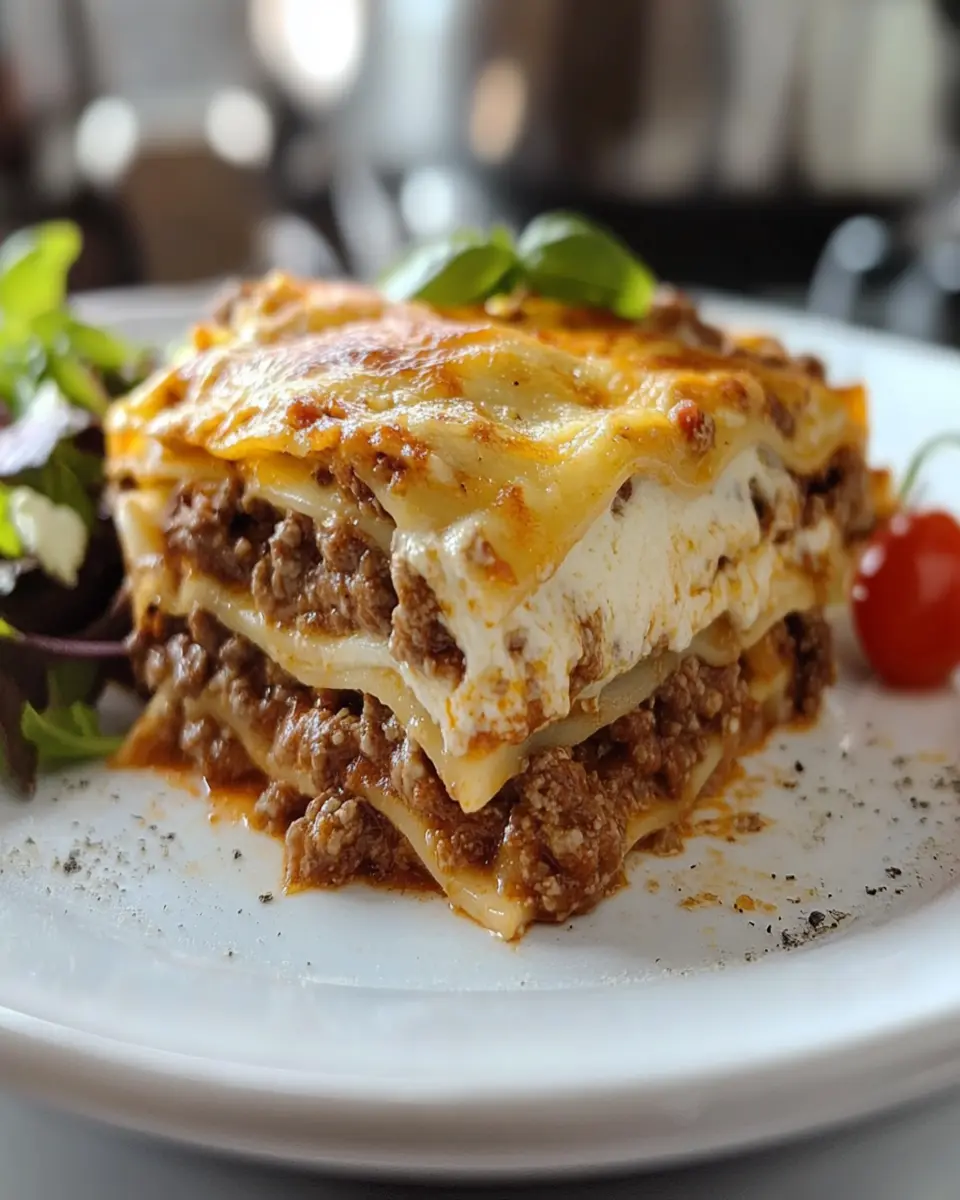 This is a classic homemade lasagna recipe that layers rich meat sauce, creamy ricotta, and gooey mozzarella cheese for a delightful meal.