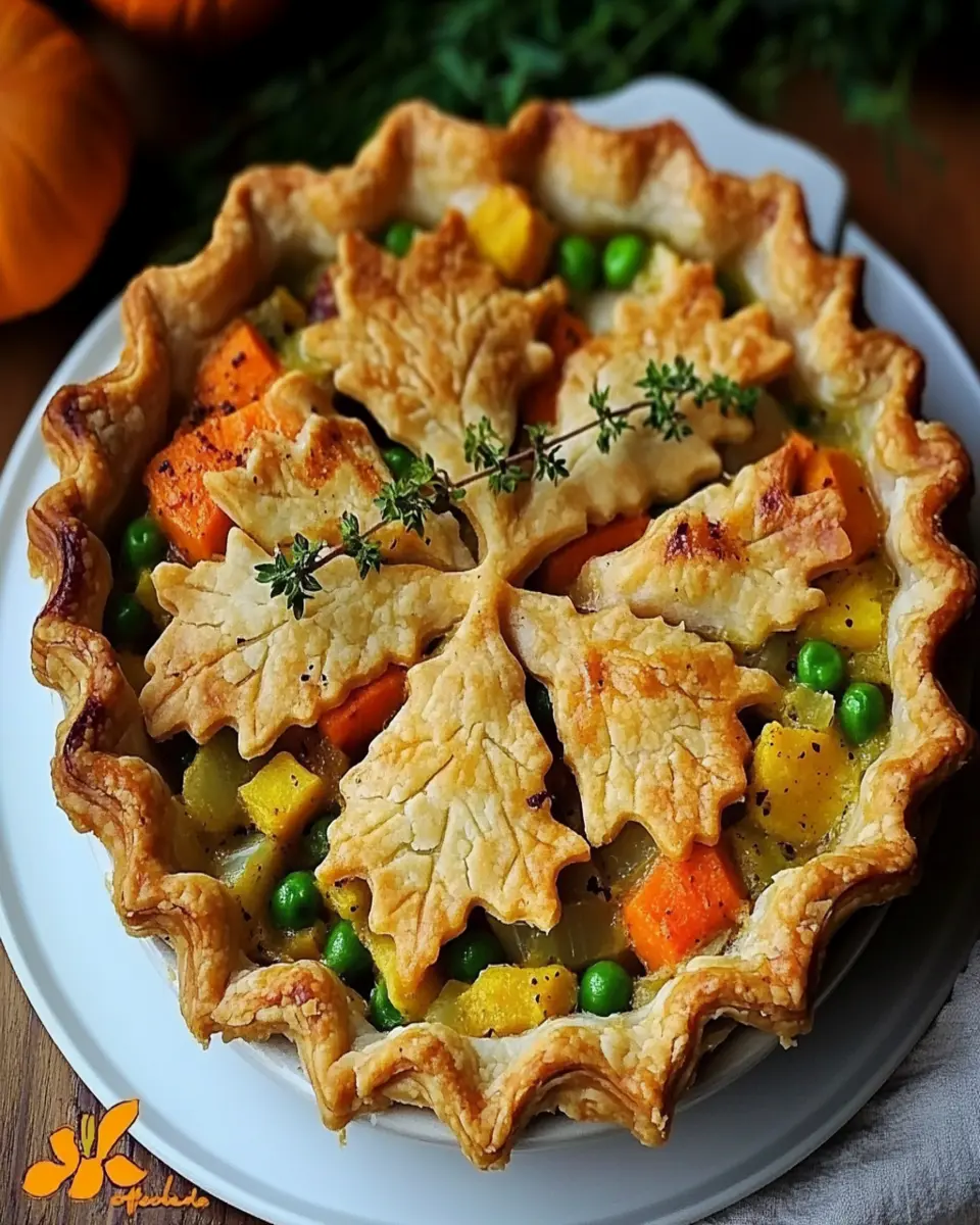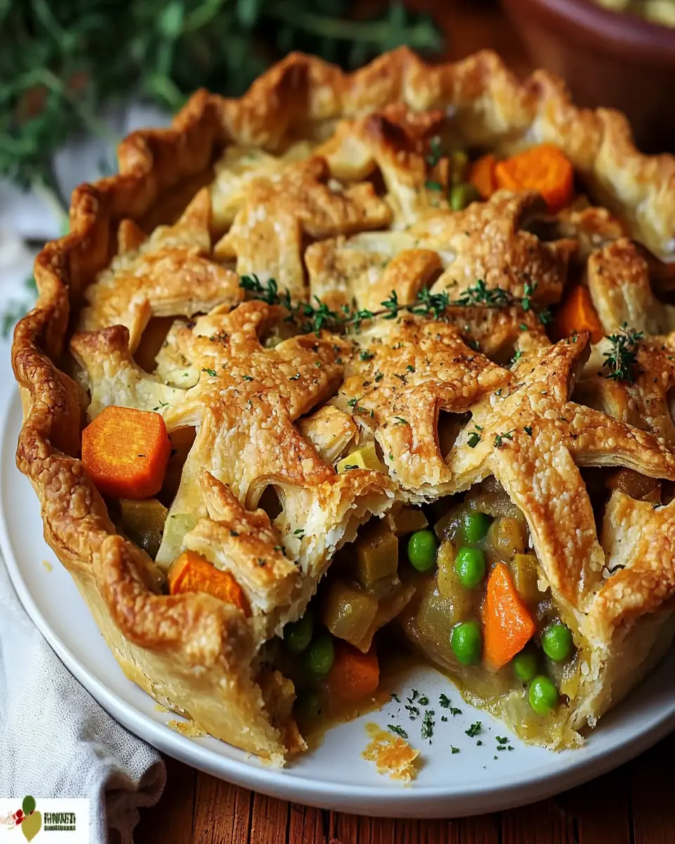 A comforting and hearty vegan pot pie filled with seasonal vegetables and a rich gravy, perfect for Thanksgiving.